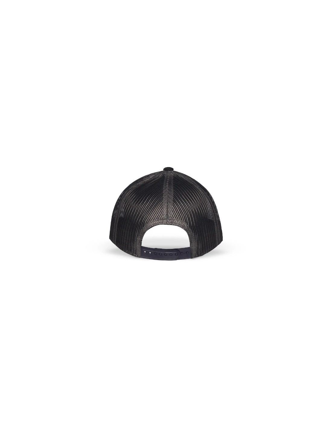 Z przodu znajduje się naszywka z płonącą czaszką w intensywnej czerwieni, wykonana w technologii haftu 3D, umieszczona na czarnej bawełnianej tkaninie typu twill.